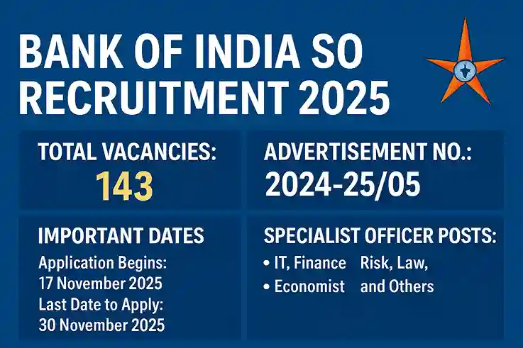 Bank of India SO Recruitment 2025: Apply Online for 143 Specialist Officer Posts, High-Salary Govt. Job Opportunity!