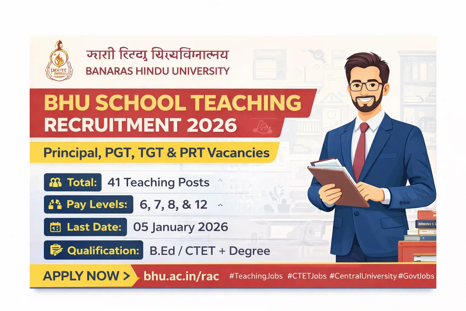 Post-Wise Vacancy & Qualification Details: BHU School Teaching Recruitment 2026