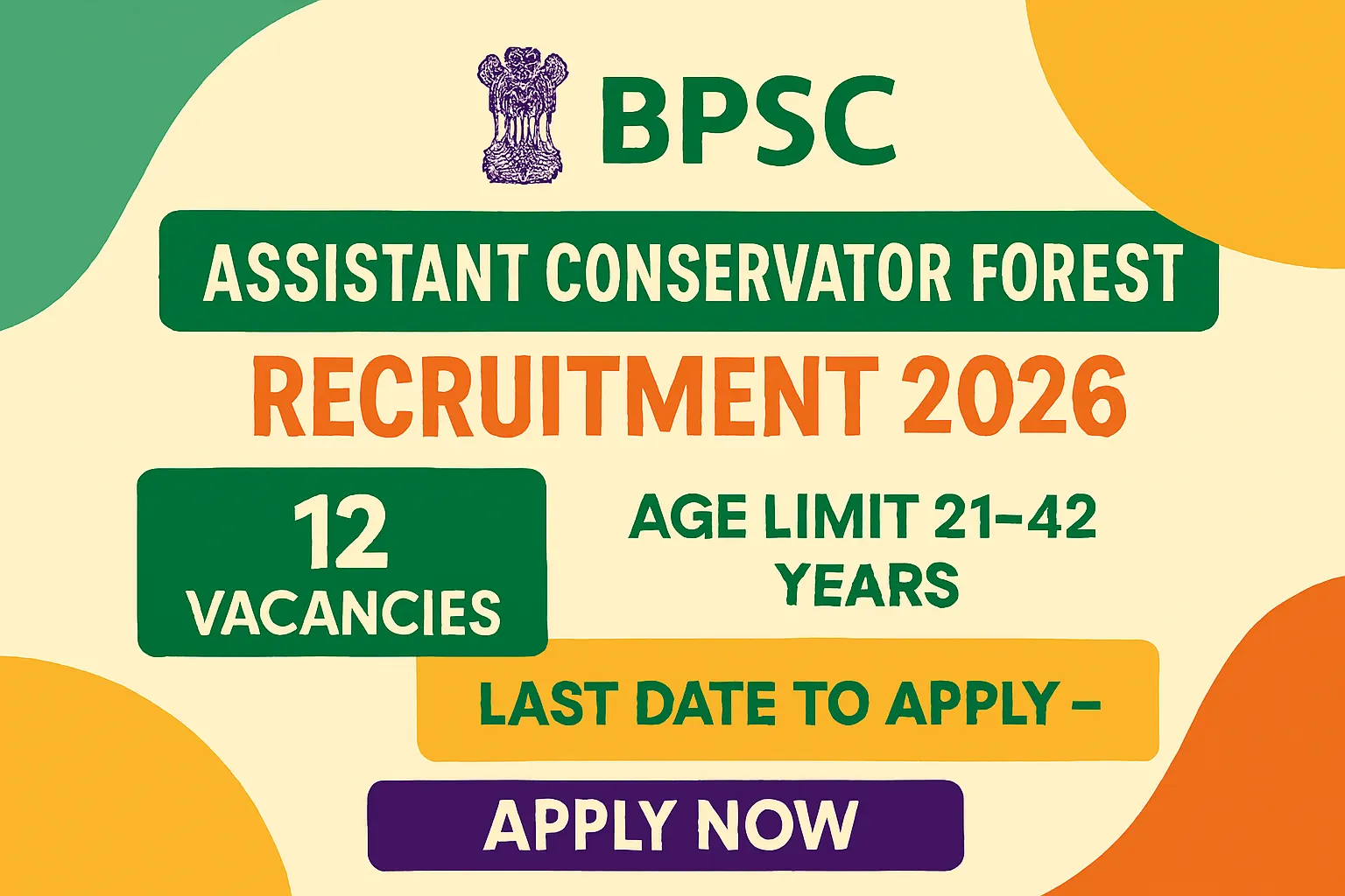 The Bihar Public Service Commission (BPSC) has released Advertisement No. 02/2026, inviting online applications for Assistant Conservator of Forests (ACF) under the Environment, Forest & Climate Change Department, Bihar. A total of 12 vacancies are available for direct recruitment. Eligible Indian citizens with a Bachelor’s degree in Forestry, Botany, Chemistry, Geology, Mathematics, Physics, Statistics, Zoology, Agriculture, or Engineering can apply. The selection process includes a written exam, physical test, and interview.