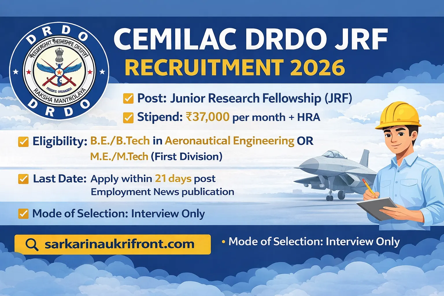 Short Description – CEMILAC DRDO JRF Recruitment 2026