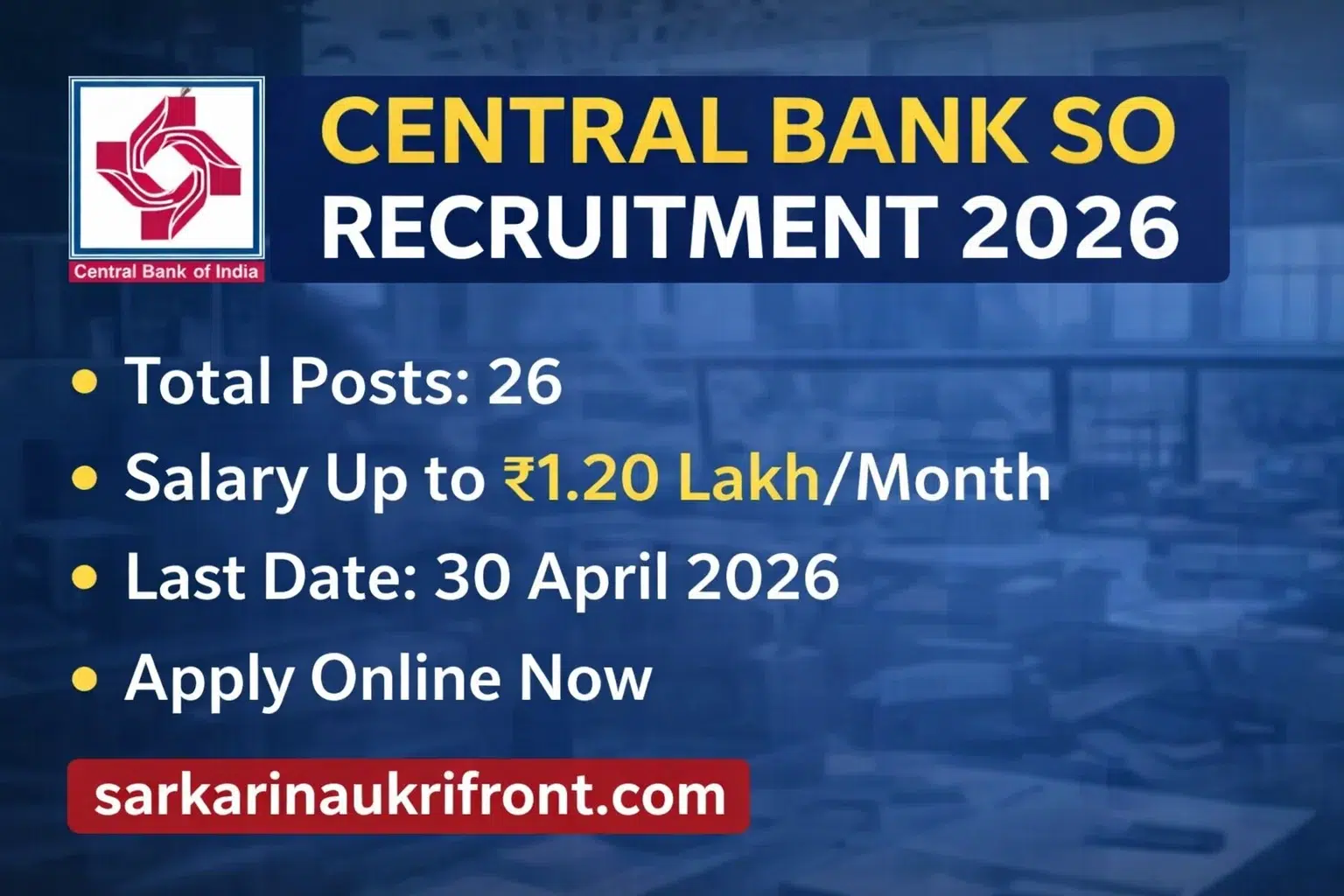 Central Bank of India SO Recruitment 2026: Salary Up to ₹1.20 Lakh, Apply Online, Eligibility & Last Date 30 April