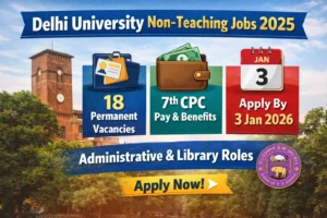 Non-teaching recruitments in Delhi University are released infrequently, and permanent vacancies under the 7th CPC attract a large number of applicants from across India. These posts provide long-term job security, career progression, and access to central government benefits, making this recruitment highly significant for aspirants looking for a reliable public sector career.