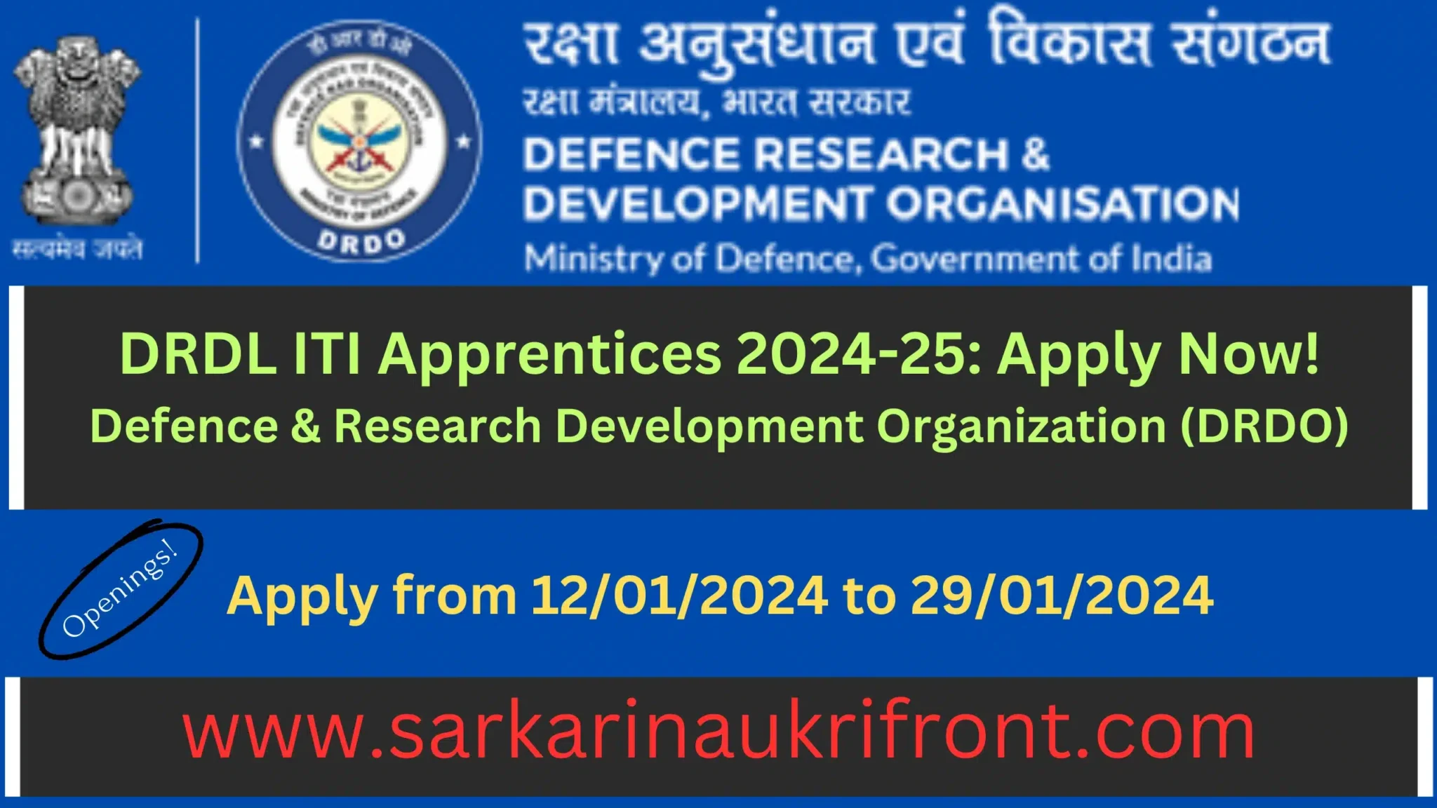 How to ApplyApplication Submission, Reservation Guidelines, Apprentice Termination Policy, Stipend and Allowances, Training Commencement InformationDefence Research & Development Laboratory (DRDL), Defence & Research Development Organization (DRDO) Hyderabad |