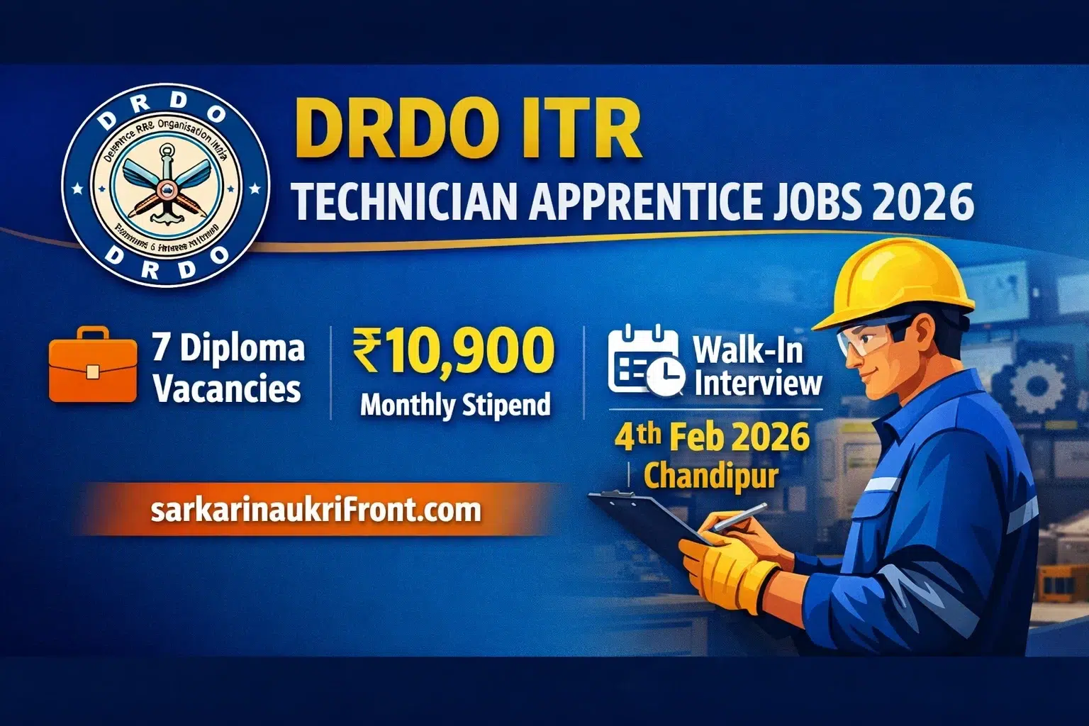 Integrated Test Range (ITR), Chandipur, a premier laboratory of the Defence Research and Development Organisation (DRDO) under the Ministry of Defence, Government of India, has released an official notification inviting eligible Diploma holders for engagement as Technician (Diploma) Apprentices. This recruitment is being conducted under the Apprentices Act, 1961, for a period of one year through a walk-in interview process. The DRDO ITR Technician Apprentice Recruitment 2026 is an excellent opportunity for young and meritorious Diploma engineers to gain hands-on training in one of India’s most prestigious defense research establishments.