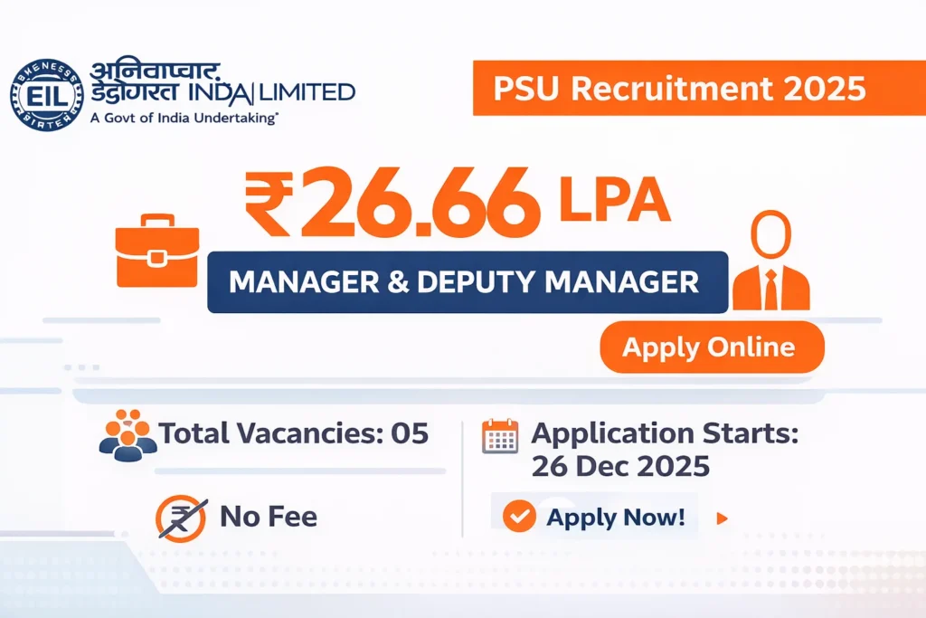 Eligible candidates meeting the qualification, experience, and age criteria as on 30 November 2025 can apply online through the official EIL website.