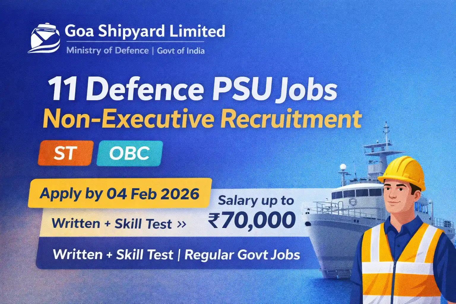 Goa Shipyard Limited (GSL), a Schedule ‘B’ Mini Ratna Category-I PSU under the Ministry of Defence, has released a Special Recruitment Drive for Scheduled Tribes (ST) and Other Backward Classes (OBC-NCL) candidates.