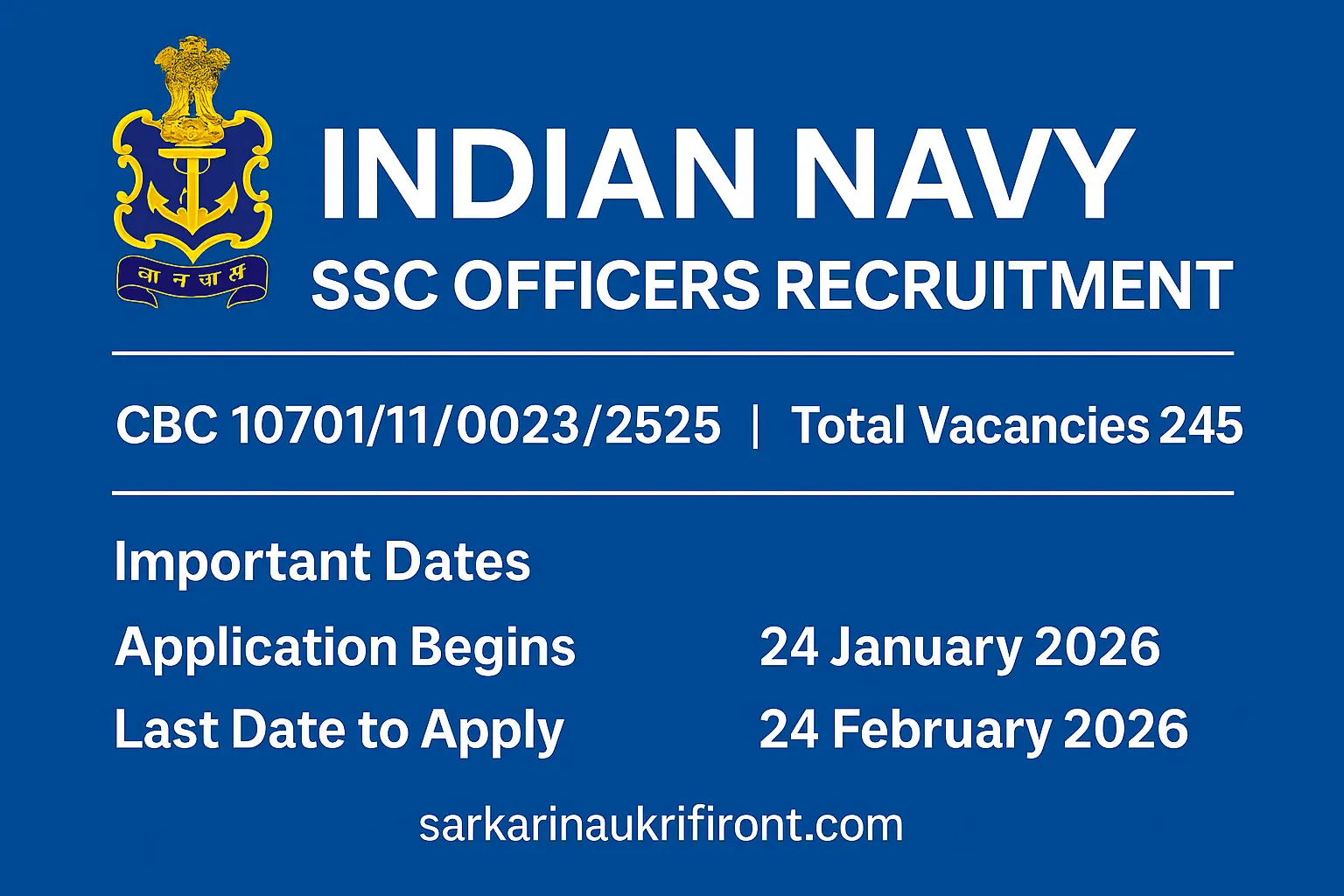 - Prestigious opportunity to join the Indian Navy as an SSC Officer.