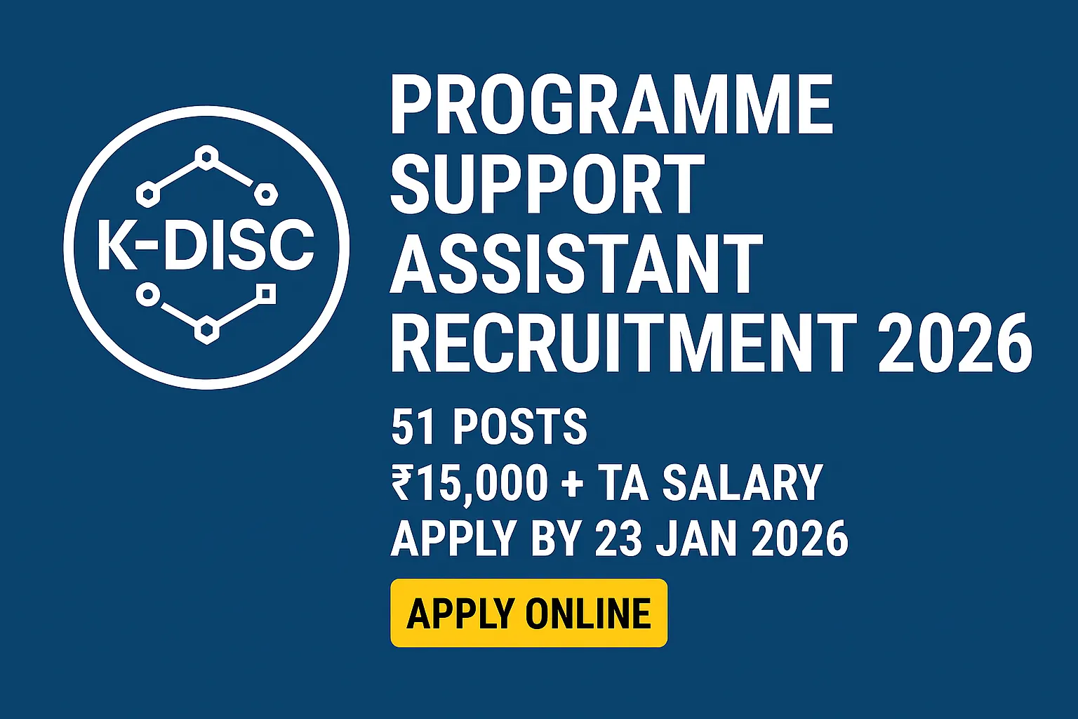 K DISC Recruitment 2026 | Merit list/rank list Based Selection | Salary: ₹15000+TA | Last Date: 23 January 2026