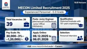 The list of candidates called for a personal interview, along with date, time, and venue, will be published on MECON’s official website and also communicated through registered email IDs. The final list of selected candidates, along with joining instructions, document verification requirements, and medical examination details, will likewise be uploaded on the website and shared via email only.​