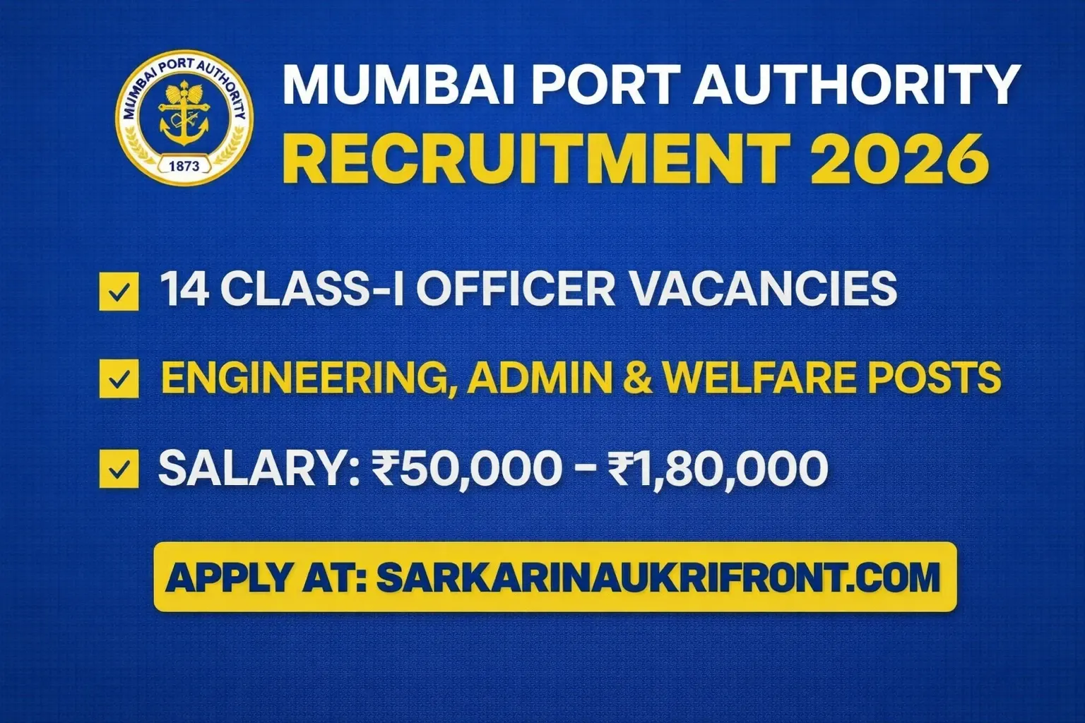 Mumbai Port Authority Recruitment 2026: Golden Opportunity for 14 Class-I Officer Posts