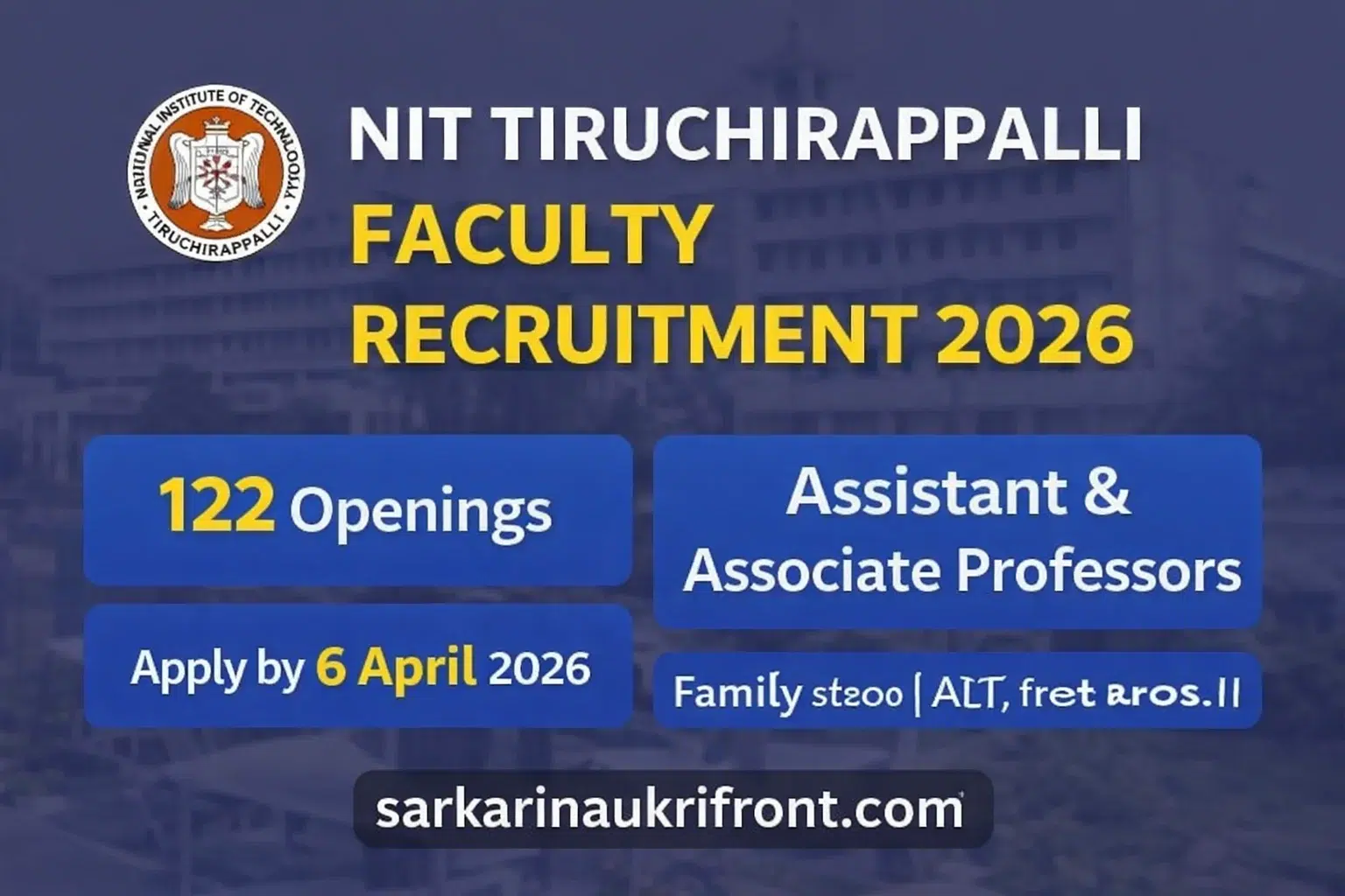 NIT Tiruchirappalli Faculty Job 2026: Vacancy-122 | Salary-218200 | Last Date-6 April 2026