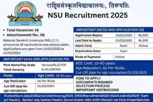 • Age Relaxation: As per Government of India norms (SC/ST: 5 years, OBC: 3 years, PwBD: up to 15 years).