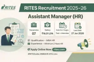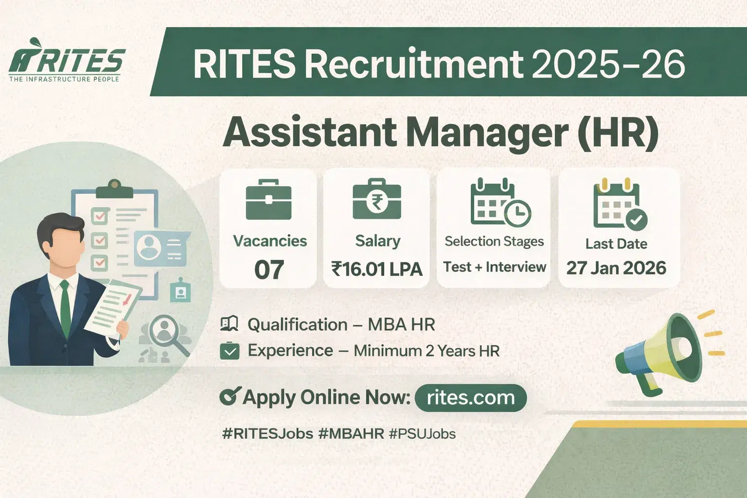 RITES Assistant Manager HR Job 2025 26: Apply Online for 7 Vacancies | Salary ₹16.01 LPA