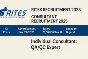 RITES Limited, a Government of India Enterprise and a premier multidisciplinary engineering consultancy company, has released an official notification inviting applications for the post of Individual Consultant: QA/QC Expert under VC No. YP/32/25. As per the advertisement, RITES requires 12 highly experienced Civil Engineering professionals to be deployed in Gujarat on a CV-based assignment.