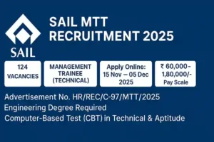 Steel Authority of India Limited (SAIL), a prestigious Maharatna Public Sector Undertaking under the Government of India, has released its official recruitment notification for 124 Management Trainee (Technical) [MTT] posts in E1 Grade. This is a highly sought-after opportunity for engineering graduates seeking a stable, high-paying, and reputable government job in the steel sector.