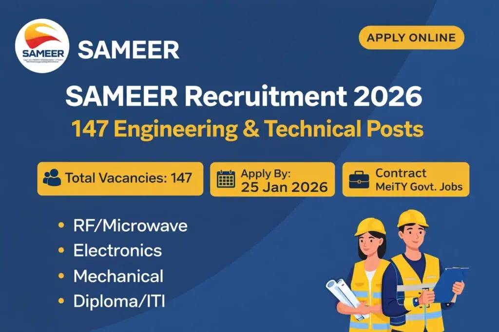 147 Govt Jobs at SAMEER | Electronics, RF, ITI, Diploma | Last Date: 25 Jan 2026